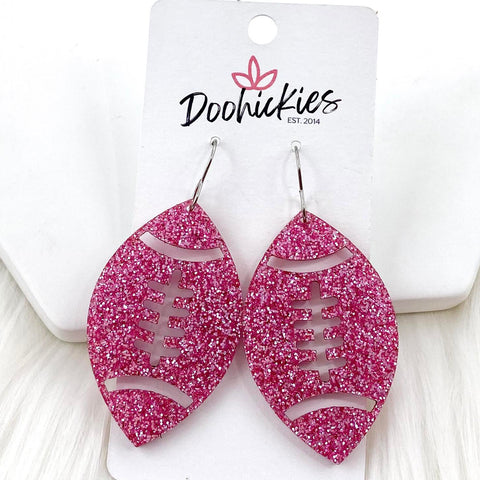 1.5" Pink Out Football Acrylic Dangles - Breast Cancer Awareness Earrings