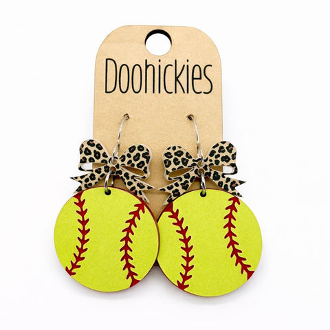 Leopard Bow Baseball and Softball Dangle Earrings - Spirit Sports Earrings